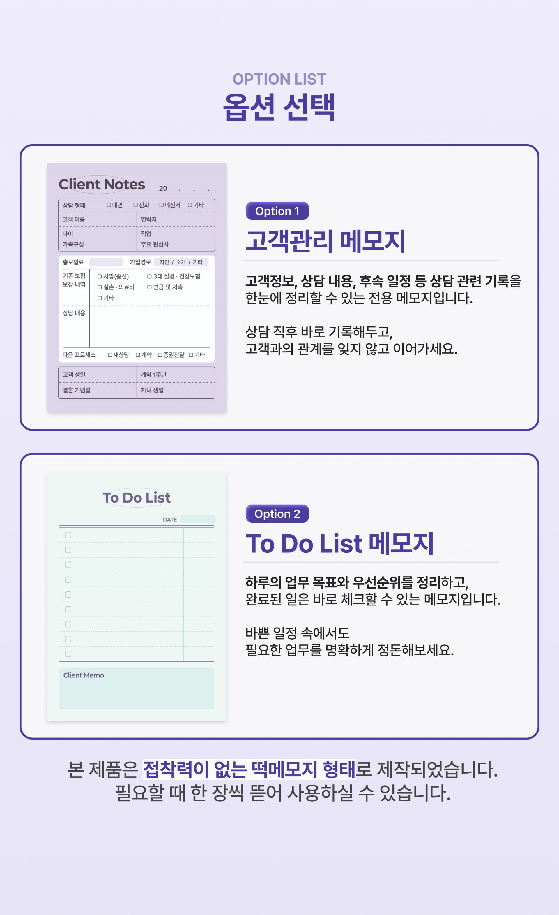 설계사 상담·업무 떡메모지
